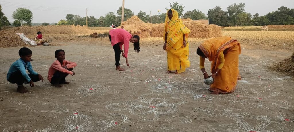অমাবস্যার দিন হয় ‘গোঠপূজা’। করা হয় ‘ছাদনদড়ি’ ও ‘বাঁধনদড়ির’ পুজাও। বিকালে গ্রামের এক প্রান্তে গরু গুলো একত্র করা হয়। সেখানে আলপনা এঁকে, তার মধ্যে রাখা হয় ডিম। এর পর ঢোল, ধামসা বাজিয়ে গোরুগুলিকে উত্তেজিত করা হয় । যে গরু ডিমটা ভাঙ্গবে সেই গরুর মালিককে গামছা, লুঙ্গি ,ধুতি দিতে হয় গ্রামের লায়াকে। সন্ধ্যার দিকে বাড়ির দরজা,তুলসিতলা সহ বিভিন্ন জায়গায় শাল, কাঁঠাল গাছের পাতায় চালের গুড়ি রেখে ,সলতে দিয়ে জ্বালানো হয় প্রদীপ। এই রীতিকে বলা হয় ‘কাঁচি দিয়ারি’। গ্রামের শেষ স্থানে পাট কাঠি জ্বালিয়ে উপস্থিত হয় গ্রামের ছেলেরাও। গ্রামের মানুষের বিশ্বাস, এই জ্বলন্ত আগুন ডিঙোলে সারাবছর খোস,দাদ এমন সব চর্ম রোগ থেকে মুক্তি মেলে। যার নাম- ‘ইজোর-পিজোর’ খেলা। রাতে গ্রামের মানুষ ঢোল,ধামসা সহ লোকবাদ্য নিয়ে সবার বাড়িতে যান। অহিরা গীত গেয়ে গো-গাভীদের জাগিয়ে রাখেন। যারা অহিরা গীত গেয়ে গো-গাভীদের জাগিয়ে রাখেন তাদেরকে বলা হয়’ ধিং ধাং বা ধাঁঙড়’। অহিরা গীতগুলো লোকসংস্কৃতির অমূল্য সম্পদ। ছোট নাগপুর মালভূমি অঞ্চলের মানুষের বিশ্বাস , অমাবস্যার রাতে মর্ত্যলোকের প্রতিটি গোয়াল বাড়িতে আসেন বুড়াবাবা” ( স্বয়ং শিব)। এসে দেখেন গো গাভীরা কেমন আছেন। সেই জন্য সারারাত গোয়াল ঘরে জ্বালানো হয় ঘিয়ের প্রদীপ।