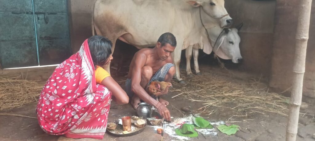 এই সময় থেকেই থাকে কৃষিজীবী মানুষের চরম ব্যস্ততা। গোয়াল ঘর সহ সমস্ত ঘর পরিষ্কার পরিচ্ছন্ন করে , মাটির প্রলেপ, রং দিয়ে সাজিয়ে তোলেন মহিলারা। সাজিয়ে তোলা হয় পুরো গ্রামকে। অমাবস্যার আগের দু’ দিন গো-গাভীদের পেট ভরে ঘাস খাওয়ানো হয়। স্নান করিয়ে শিং,খুর ও মাথায় তেল, সিঁদুর দেন কৃষিজীবী মানুষ। বাঁদনার পাঁচ দিন – তেল দেওয়া, ঘাওয়া, অমাবস্যা, গরয়াপূজা , গরু খুঁটা নামে পরিচিত।
