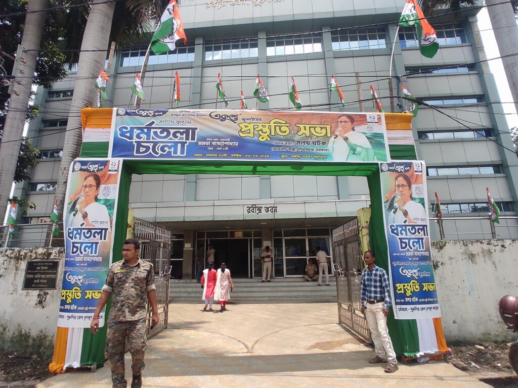 তৃণমূল কংগ্রেসের পতাকায় রঙিন হয় রবীন্দ্র ভবনের চত্বর। প্রচণ্ড গরমের মধ্যেও জেলার নানা প্রান্ত থেকে কর্মী-সমর্থকেরা ভিড় জমান সভাস্থলে। মঞ্চে বারবার প্রতিধ্বনিত হতে থাকে “মা-মাটি-মানুষের সরকার চাই, একুশে জুলাই কলকাতায় যাই” স্লোগান।