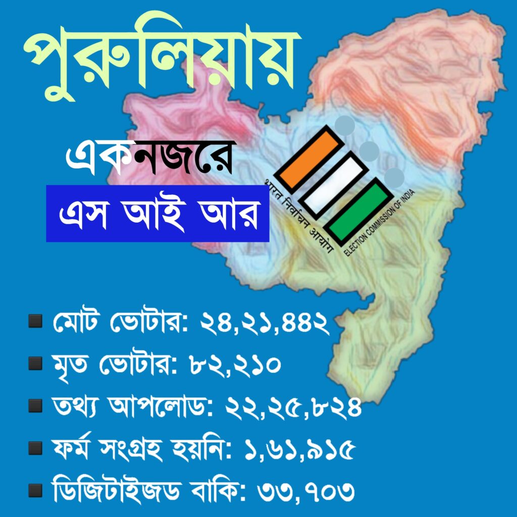 পুরুলিয়ায় ভোটার তালিকা সংশোধনে বিশেষ সর্বদলীয় বৈঠক। জেলার মোট ২৪ লাখ ২১ হাজার ৪৪২ ভোটারের মধ্যে নাম বাদ যেতে পারে ১ লাখ ৬১ হাজার ৯১৫ জনের। এর মধ্যে মৃত ভোটার ৮২,২১০, স্থায়ীভাবে সরে যাওয়া ৫৯,৮১৬ এবং অন্যত্র নাম থাকা ৪,৪২৬।