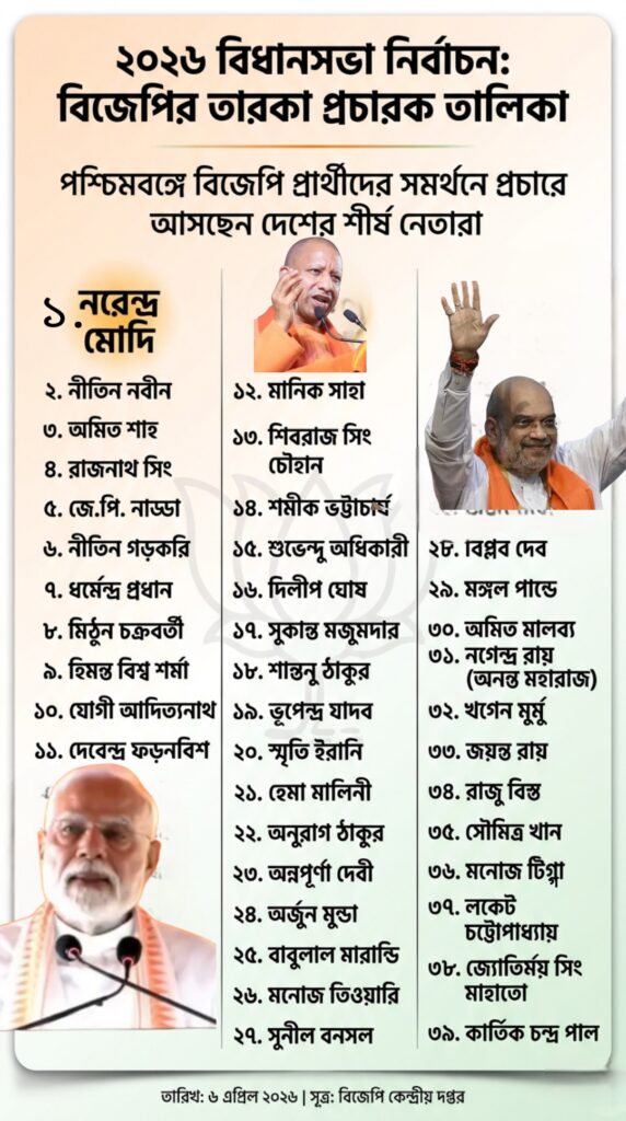 “২০২৬ বিধানসভা নির্বাচন: বিজেপির তারকা প্রচারক তালিকা”