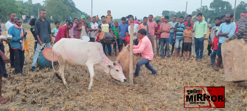 পঞ্চমদিন অর্থাৎ শেষদিন ‘গরু খুঁটা ‘। দুদিন ধরে গরুকে সেবাযত্ন করে উৎসবের শেষ দিনে বিকাল বেলায় গ্রামের ফাঁকা মাঠে ও কুলিতে সবল গরু গুলোকে বিভিন্ন রং এ সাজিয়ে একটি শক্ত খুঁটিতে বাধা হয়। তারপর সামনে মরা পশুর চামড়া ঘুরিয়ে তাকে উত্তেজিত করে তোলে গ্রামবাসীরা। সেই সঙ্গে চলে ঢোল,ধামসা সহযোগে অহিরা গীত পরিবেশন। আসলে গবাদি পশুদের কৃতজ্ঞতা জানানোর জন্য এই উৎসব নিবেদিত করে থাকে কৃষিজীবি মানুষ। কারন কৃষিভিত্তিক সভ্যতায় , গবাদি পশুদের অবদান অপরিহার্য। গৃহস্থ্যের শ্রীবৃদ্ধির জন্য তারাও সারাবছর অক্লান্ত পরিশ্রম করে থাকে।সেই জন্য বাঁদনা পরবে আমন ধান বাড়িতে তোলার আগে কৃষি সহায়ক যন্ত্রপাতি সহ গরু, গাভীদের বন্দনা করে থাকেন কৃষিজীবি মানুষ। তাদের দিয়ে কোনো কাজ করা হয় না। দেওয়া হয় বিশ্রাম।বিশ্বায়নের যুগে নাগরিক সংস্কৃতি , গ্রামীণ সংস্কৃতিকে থাবা বসালেও আজও কৃষিজীবী মানুষ ধরে রেখেছে তাদের ঐতিহ্য, তাদের সংস্কৃতি।