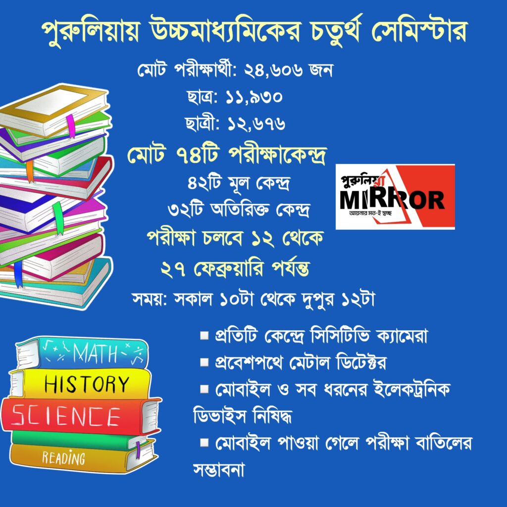 পরীক্ষা পরিচালনা কমিটির জেলার যুগ্ম আহ্বায়ক জ্যোতির্ময় বন্দ্যোপাধ্যায় জানান, “পুরুলিয়ায় সুষ্ঠু ও শান্তিপূর্ণভাবে পরীক্ষা সম্পন্ন করতে আমরা সবদিক থেকে প্রস্তুত।” আপৎকালীন দলের সদস্য বিকাশ মাহাতো বলেন, “পরীক্ষার্থীদের সুবিধাই আমাদের প্রথম লক্ষ্য। ছাত্র-ছাত্রীরা যাতে নির্বিঘ্নে পরীক্ষা দিতে পারে তার জন্য সমস্ত রকম পদক্ষেপ নেওয়া হয়েছে।”