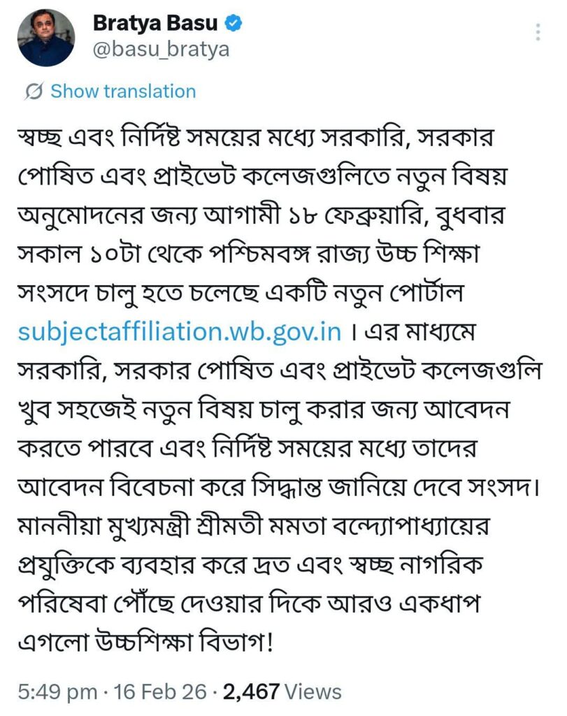 রাজ্যের শিক্ষামন্ত্রী ব্রাত্য বসুর এক্স (সাবেক টুইটার) হ্যান্ডেলের একটি পোস্ট ঘিরে নতুন করে আশার আলো দেখছেন কুড়মালি ভাষাভাষী মানুষজন ও পড়ুয়ারা। আর শিক্ষামন্ত্রীর সেই বার্তার পরেই স্নাতক স্তরে কুড়মালি ভাষার পঠনপাঠন চালুর দাবি পুরুলিয়ায় ফের একবার জোরালো হয়ে উঠল। এই দাবিতেই আজ পুরুলিয়ার জে কে কলেজে ডেপুটেশন দিলো ‘অল ওয়েস্ট বেঙ্গল কুড়মালি স্টুডেন্ট অ্যাসোসিয়েশন’।